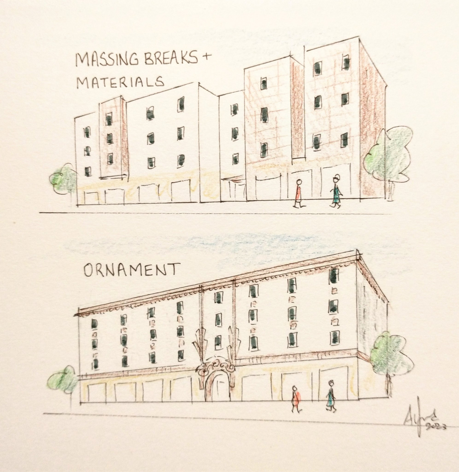 Fix: Update the California Department of Housing and Community Development’s model Objective Design Standards to give projects a clean choice: (A) comply with conventional massing/articulation rules, or (B) use a simpler envelope and meet a measurable threshold of real ornament (projections/recesses, columns/bands/cornices/fins, tile or relief work, murals), with minimum depth and material standards. Fewer joints and penetrations mean fewer leaks; visible craft improves public reception. This policy concept has been introduced in the 2023 North Berkeley Bay Area Rapid Transit (BART) Objective Design Standards and can be expanded statewide.