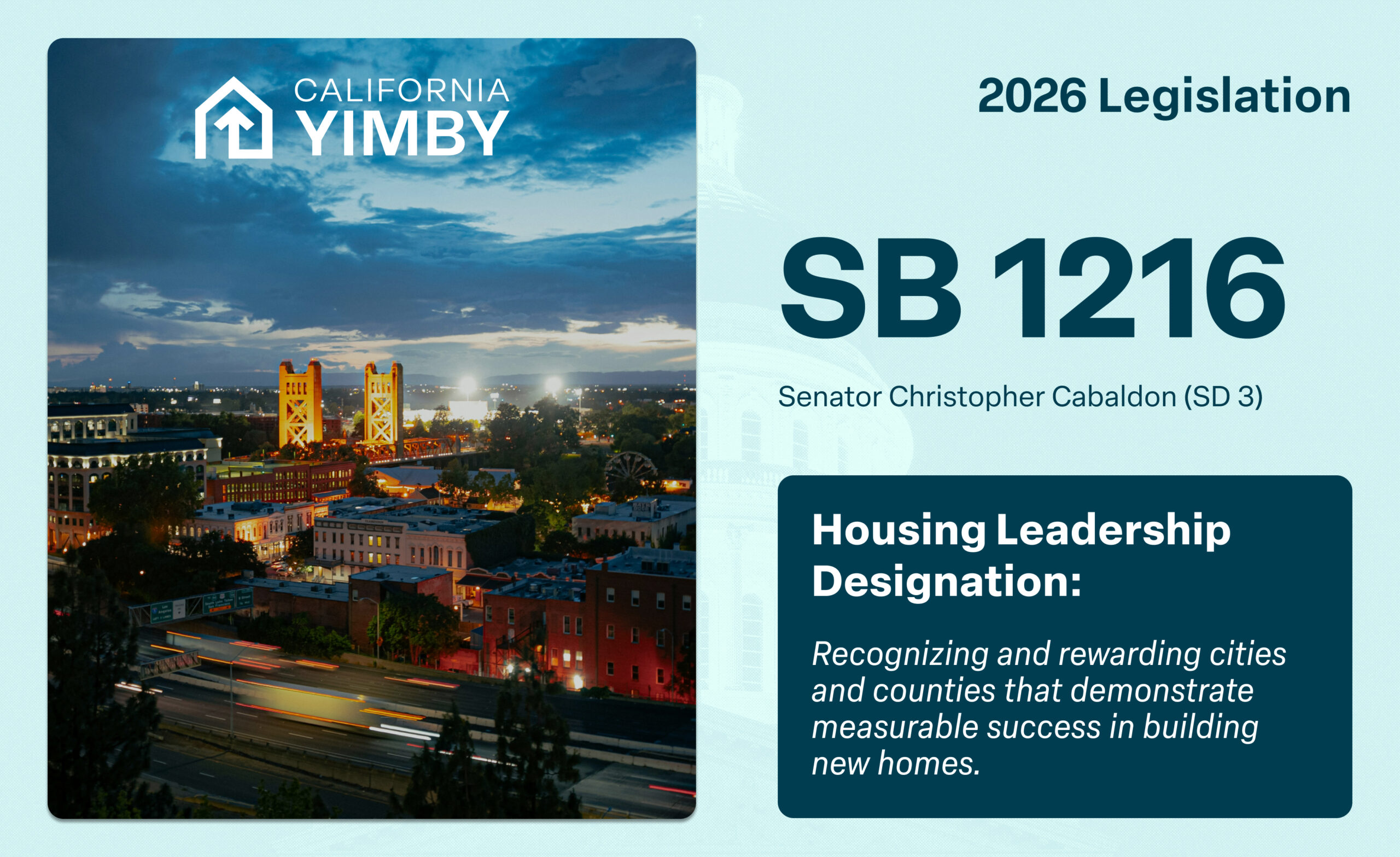 SB 1216 will create a new housing leadership designation to recognize and reward cities and counties that demonstrate measurable success in building new homes.